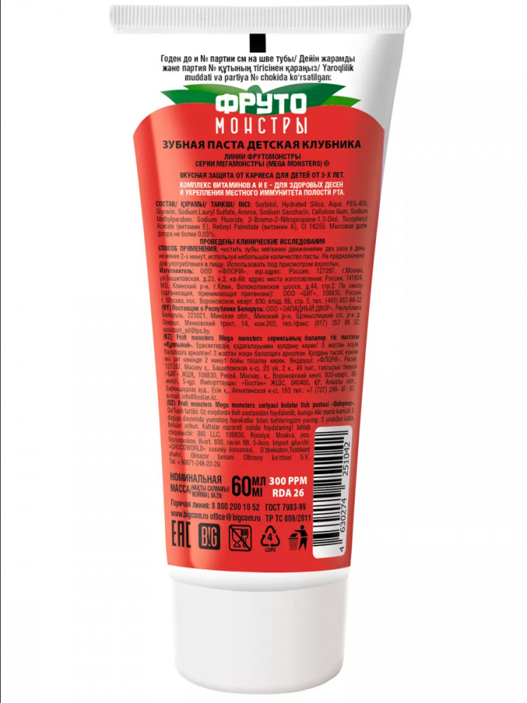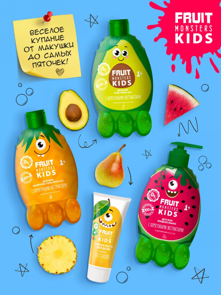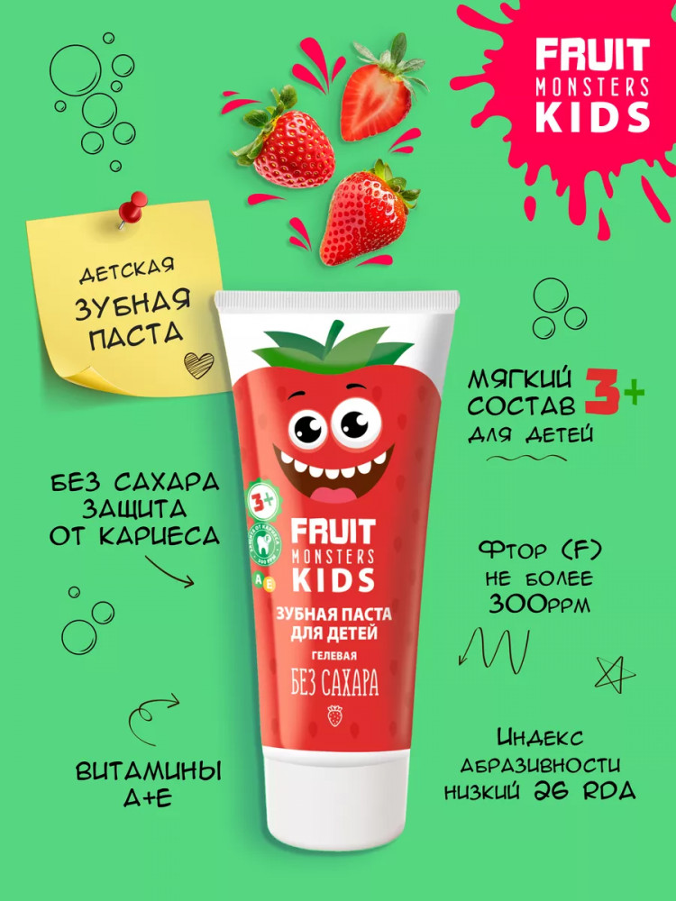 Мегамонстры Зубная паста детская без сахара «Fruit Monsters Kids. Клубника»