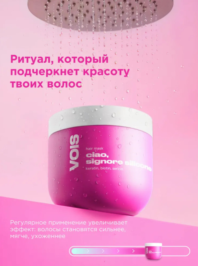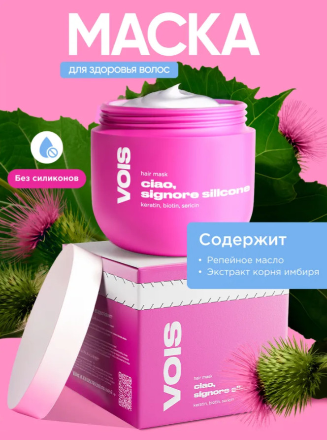 Верните волосам силу, плотность и блеск с помощью премиальной формулы VOIS без силиконов и сульфатов. Маска разработана для сухих, повреждённых и склонных к ломкости волос, а также подходит для окрашенных, осветлённых, кудрявых и тонких волос