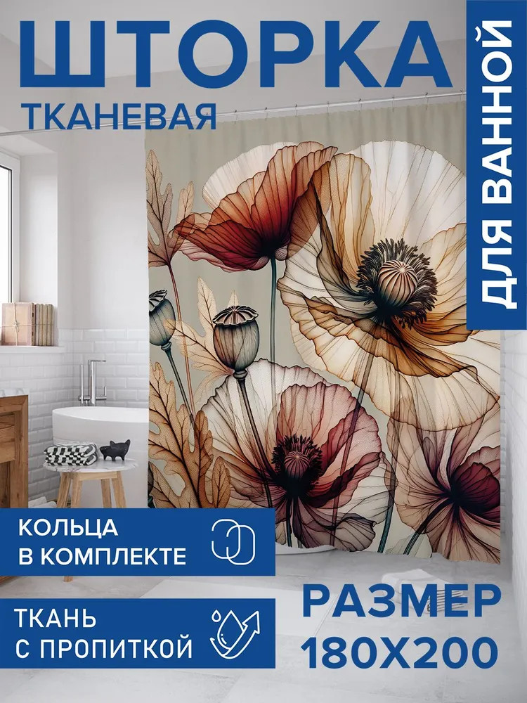 Занавеска для ванной комнаты с 3D эффектом стильное дополнение для любого интерьера. Водоотталкивающая пропитка защитит вашу мебель от влаги и брызг, сохраняя полы сухими. Мягкая и приятная на ощупь ткань из сатена (100% полиэстер) плотностью 80 г/м2 легко расправляется под собственным весом, не прилипает и не мнется, избавляя вас от необходимости использовать утяжелители и магниты. Стойкий и утонченный принт, нанесенный сублимационной печатью, останется ярким даже при контакте с водой, паром и после множества стирок. Отверстия для крючков надежно обработаны оверлоком для долговечности.