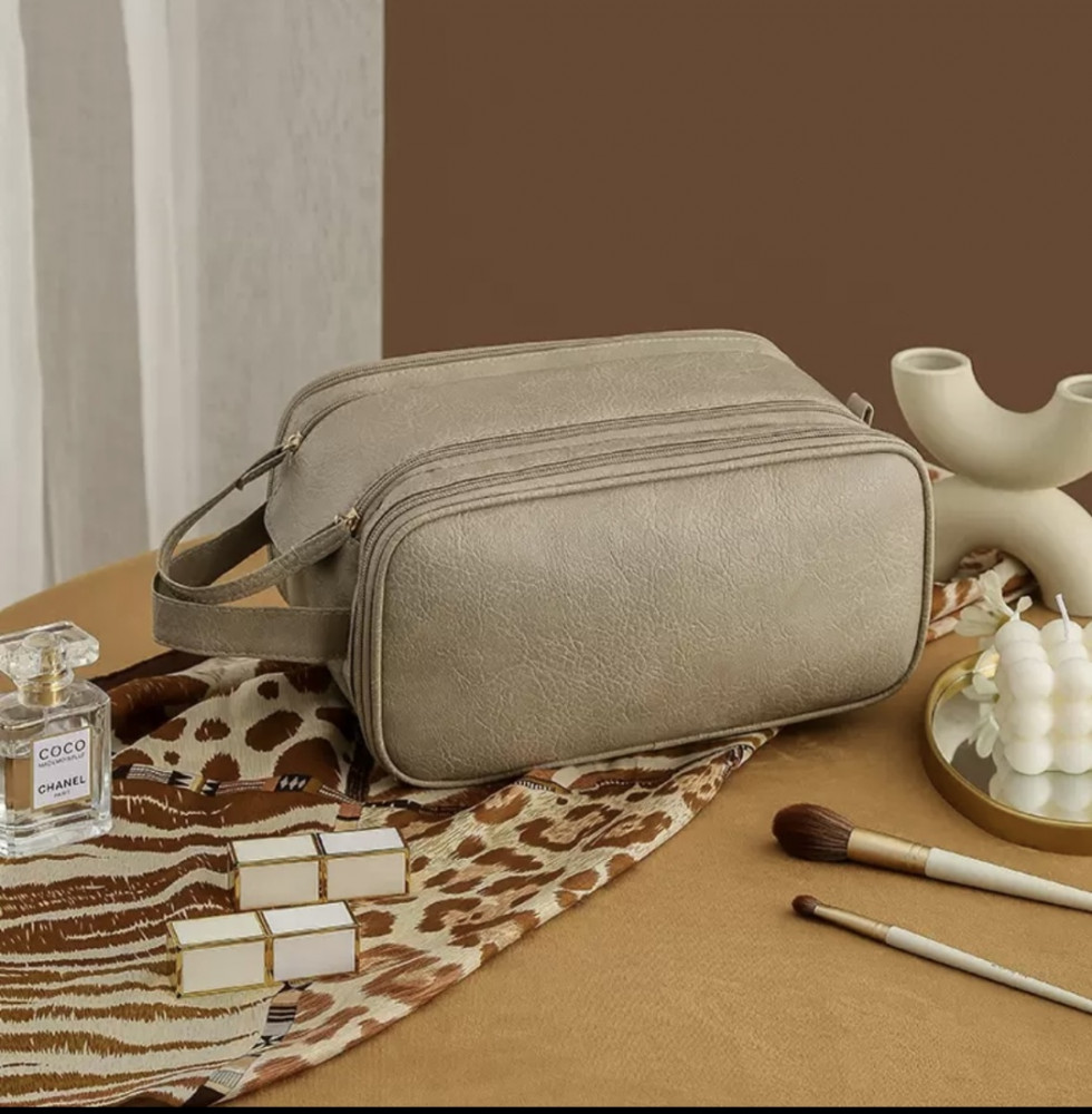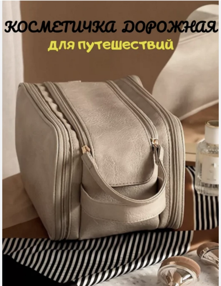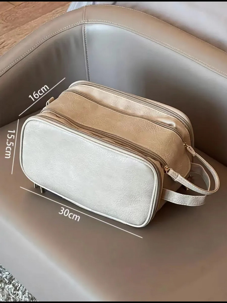 Дорожная косметичка — практичный и стильный аксессуар для хранения косметики и необходимых мелочей. Подходит для ежедневного использования, командировок и путешествий. Модель имеет три отделения: основное — просторное, с двумя молниями и магнитной застёжкой, внутри — потайной карман и два кармана на резинке; первое боковое отделение оснащено сеткой и водонепроницаемой подложкой, второе — сетчатым отсеком на молнии и влагостойким карманом для мокрых предметов. Удобная короткая ручка облегчает переноску. Косметичка выполнена из прочной искусственной кожи с водоотталкивающей подкладкой, легко очищается. Размер — 30×15.5×16 см. Благодаря вместительности и компактности подходит для хранения косметики, принадлежностей, документов и лекарств. Идеальный вариант для дома, поездок, спортзала, бассейна или командировок.