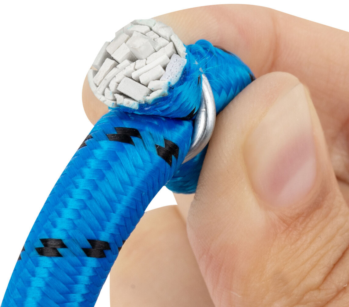 Эластичный материал стяжки надежно удерживает предметы разного размера. Металлические крючки позволяют быстро зафиксировать стяжку без узлов и сложных креплений.