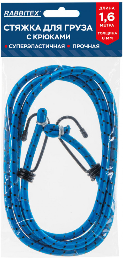 Эластичная стяжка Rabbitex обеспечивает надежную фиксацию в любых условиях. Это простое и удобное средство для фиксации грузов, надежного закрепления багажа или организации пространства. Универсальное решение для дома и дачи, пригодится также и туристам.