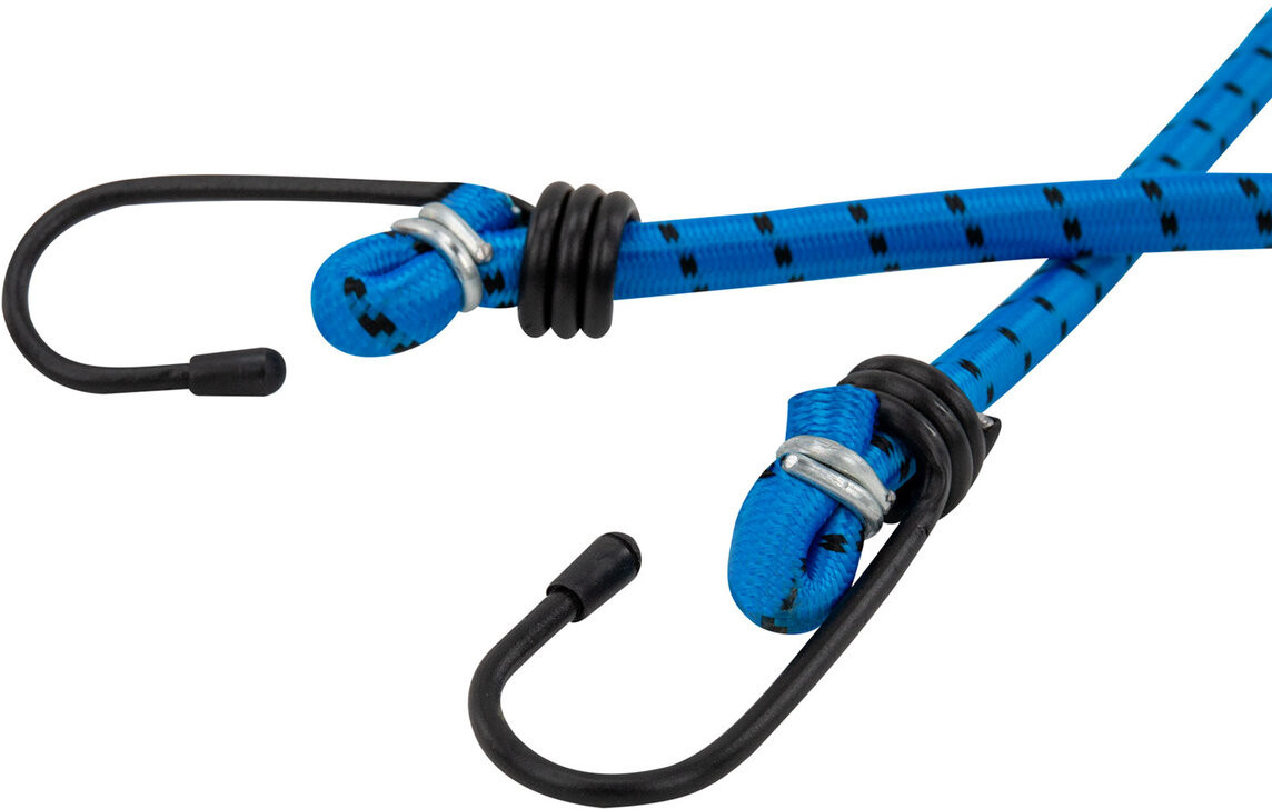 Эластичный материал стяжки надежно удерживает предметы разного размера. Металлические крючки позволяют быстро зафиксировать стяжку без узлов и сложных креплений.
