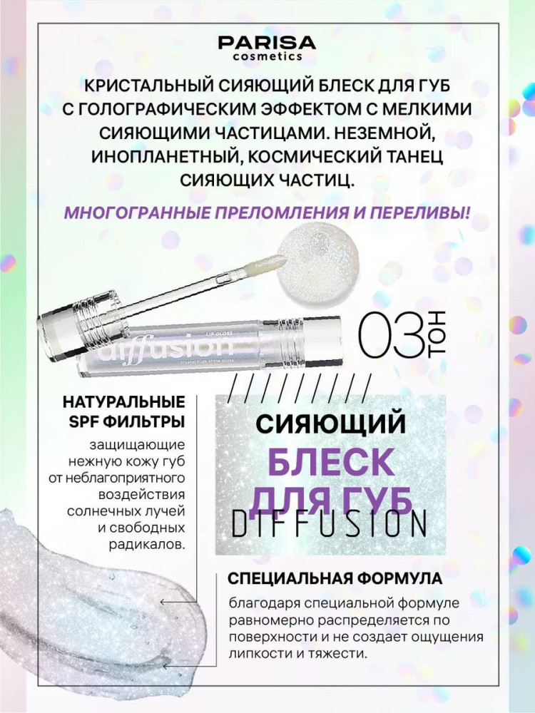 Parisa Cosmetics Блеск для губ «Сияющий кристалл. Diffusion Lip Gloss Crystal», тон 3 Сияющий сапфир
