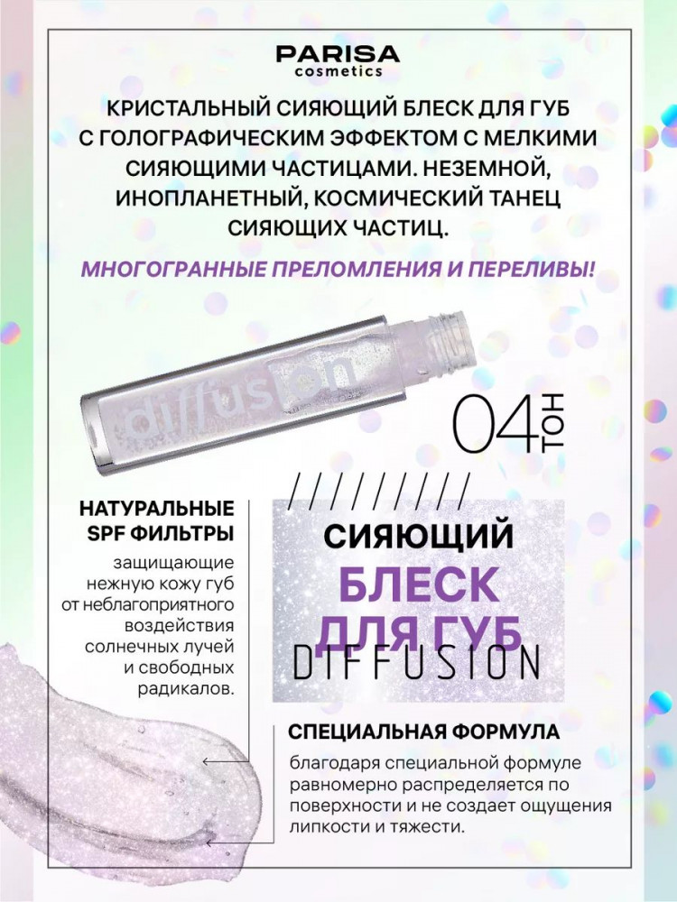 Parisa Cosmetics Блеск для губ «Сияющий кристалл. Diffusion Lip Gloss Crystal», тон 4 Розовый кварц