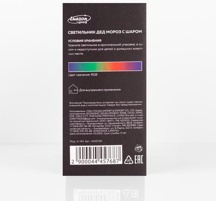 Luazon Lighting Прибор световой «Дед Мороз с шаром»новинка -25%