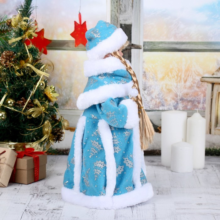 Фигурка Снегурочки высотой 40 см в голубой шубке с посошком станет выразительным элементом новогоднего декора. Работая от батареек, она оживляет праздничную атмосферу за счёт плавного движения, не требуя подключения к сети. Высота 40 см обеспечивает заметное присутствие под ёлкой или на праздничном столе. Движение добавляет живость и динамику композиции. Питание от батареек упрощает размещение без ограничений по проводам. Стиль совмещает советские традиции и элементы фьюжн, подчёркивая оригинальность. Подходит для взрослых коллекционеров и любителей новогодних фигурок. Эта Снегурочка помогает воплотить дух праздника и тепла в интерьере. Её образ и движение привлекают внимание, создавая уют и напоминая о традициях зимних торжеств. |