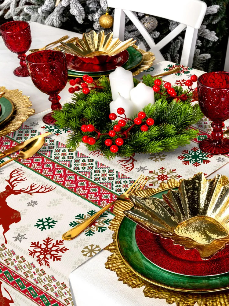 Многоразовая скатерть позволит сохранить поверхность стола в отличном состоянии. Кухонную дорожку можно использовать дома и в квартире. Чтобы разнообразить сервировку и оформление стола, попробуйте сочетать скатерть-дорожку с другими элементами столового текстиля. Нарядный предмет настольного декора позволит легко обновить привычный интерьер! С ним вы почувствуете праздничную атмосферу в Новый Год и Рождество, а еще дорожка подойдет для встречи в семейном кругу.