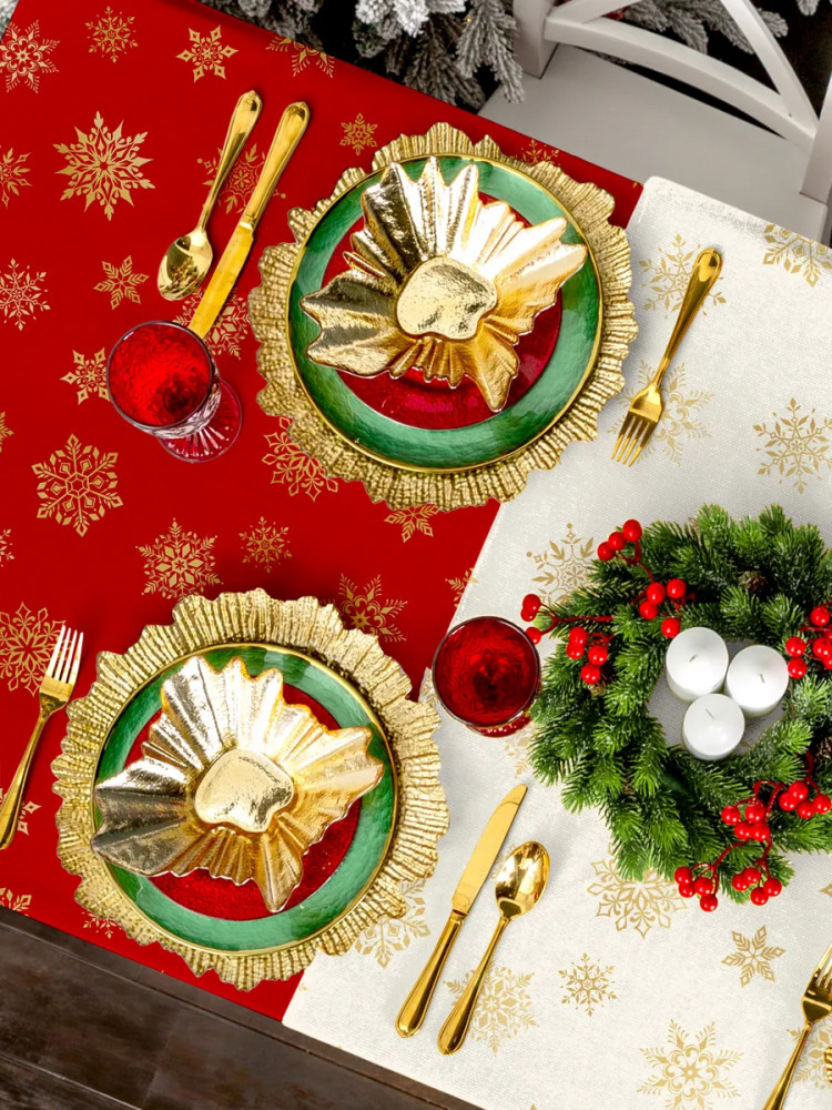 Унисон Комплект из скатерти и дорожки на стол «Red snowflakes»новинка -35%