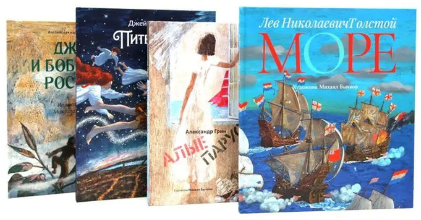Море историй. Артбуки Михаила Бычкова. Комплект из 4 книгЛев Николаевич Толстой, Джеймс Барри, Александр Грин новинка