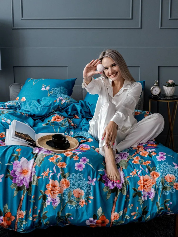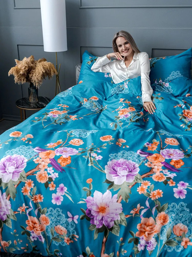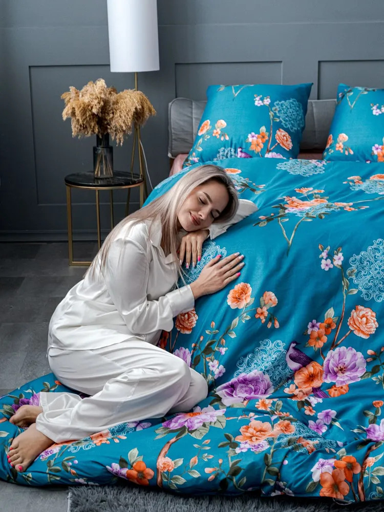 Pavline Комплект постельного белья «Ветки с цветами на зеленом»