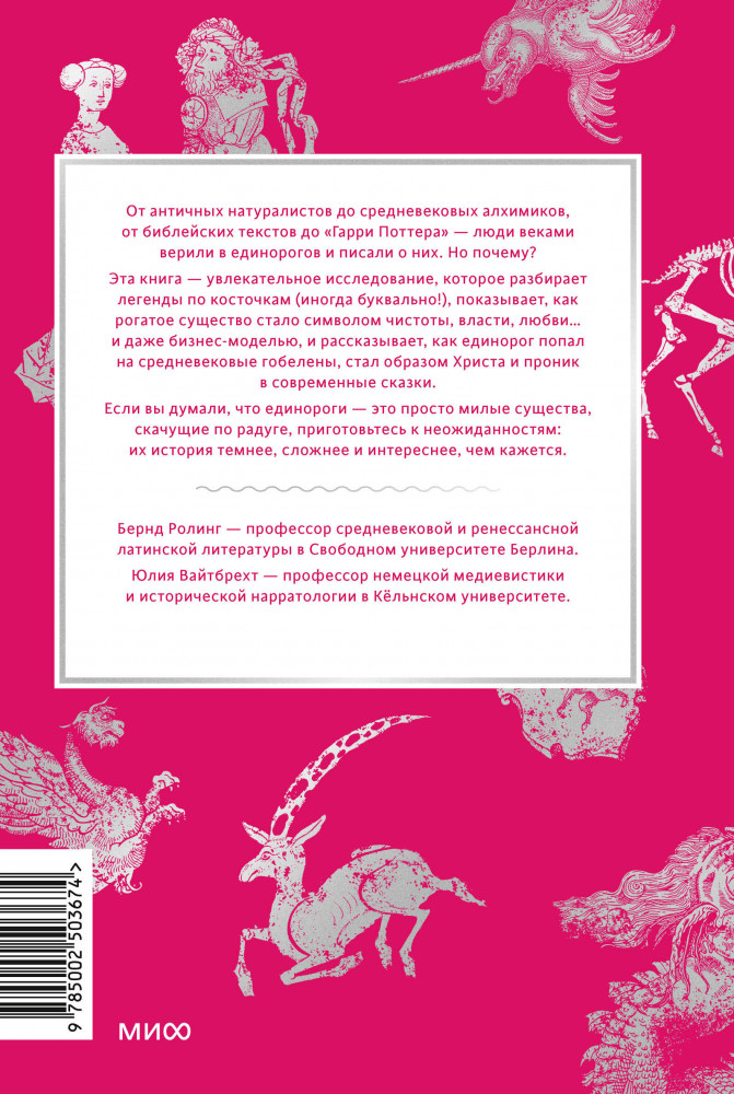 Серия: Мифы от и до От античных натуралистов до средневековых алхимиков, от библейских текстов до «Гарри Поттера» — люди веками верили в единорогов и писали о них. Но почему? Эта книга — увлекательное исследование, которое разбирает легенды по косточкам (иногда буквально!), показывает, как рогатое существо стало символом чистоты, власти, любви... и даже бизнес-моделью, и рассказывает, как единорог оказался на средневековых гобеленах, стал образом Христа и проник в современные сказки. |