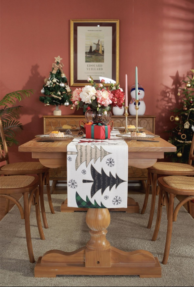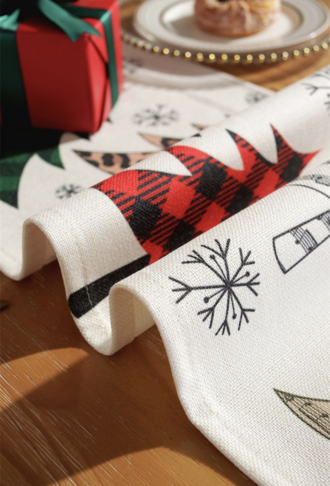 Новогодняя скатерть-дорожка из рогожки (100% хлопок) украсит собой праздничный стол, защитив его от царапин и других повреждений. Длинная прямоугольная скатерть размером — современный вариант сервировки рождественского стола. Скатерть из хлопчатобумажной, неприхотливой в уходе ткани сделает кухню по-настоящему стильной. |