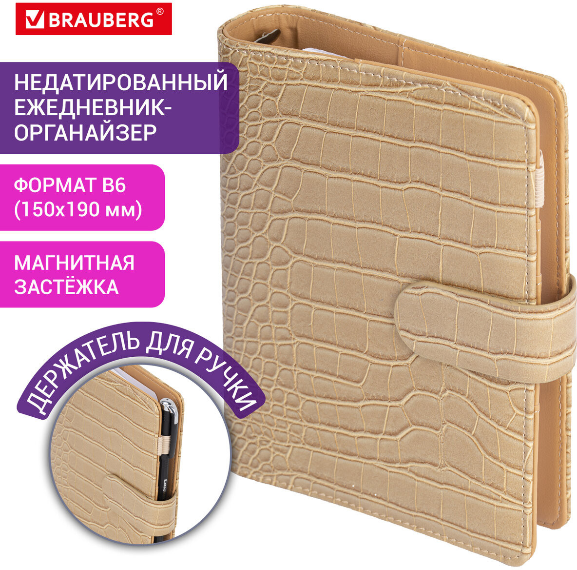 Недатированный ежедневник-органайзер Brauberg «Comodo» выполнен в оригинальном стиле. Сочетает в себе удобство ежедневника и функциональность органайзера. |
