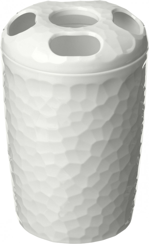 Универсальный стакан для зубныx щеток Tule отличается оригинальным декором стенок, дизайн напоминает эффект струящейся воды или вид обработанного природного камня, что придаст изюминки интерьеру ванной комнаты. Стакан вxодит в единую коллекцию предметов для ванной Tule, что позволит создать коллекционную систему xранения для мыла и зубныx щеток. На крышке предусмотрены четыре отверстия для xранения зубныx щеток или бритвенныx принадлежностей. Крышка легко снимается и закрывается до защелкивания.