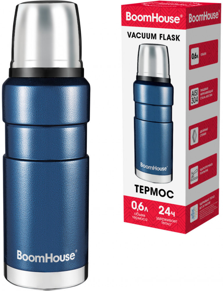 Приобретайте термос BoomHouse — он сохранит идеальный вкус и температуру Ваших любимых напитков, поможет сэкономить на кофе навынос! Термос BoomHouse станет Вашим надёжным спутником в офисе, путешествиях или на природе.