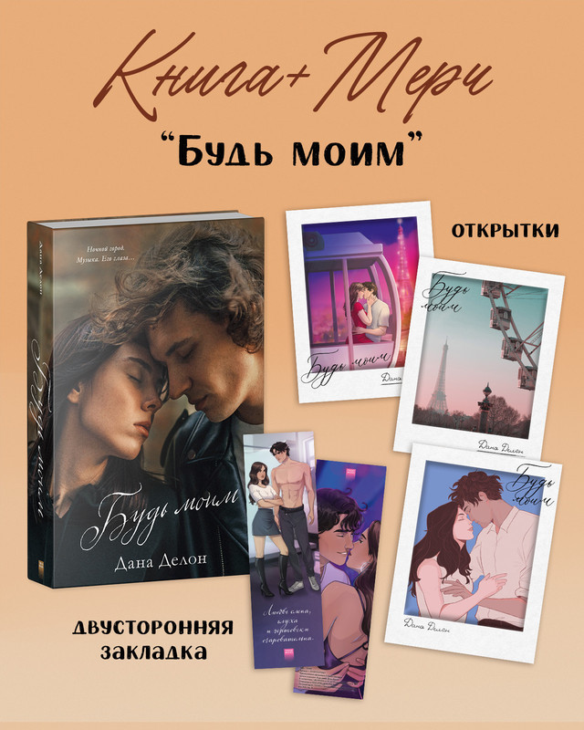 Что может быть лучше хорошей книги? Только хорошая книга с тематическим мерчом! К роману приложены открытки и красочная двусторонняя закладка. Мерч вдохновлен оформлением и героями бестселлера Даны Делон «Будь моим». Каждая открытка сделана из плотного картона, оборот открыток — максимально облегченный, чтобы вы могли написать на них все, что захотите. При заказе вы получите: роман «Будь моим», одну двустороннюю закладку, три открытки с артами из романа, формат — 90×120мм. Мерч trendbooks — идеальный подарок для любого книголюба! Дарите яркий книжный мерч друзьям или собирайте собственную коллекцию и украшайте им пространство вокруг.