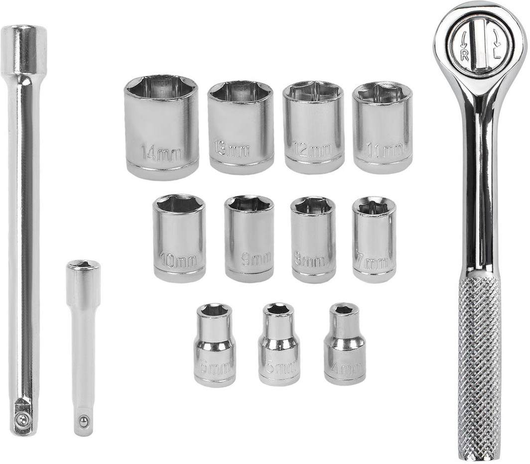 • головки торцевые 1/4" (4, 5, 6, 7, 8, 9, 10, 11, 12, 13, 14) – 11 шт.;