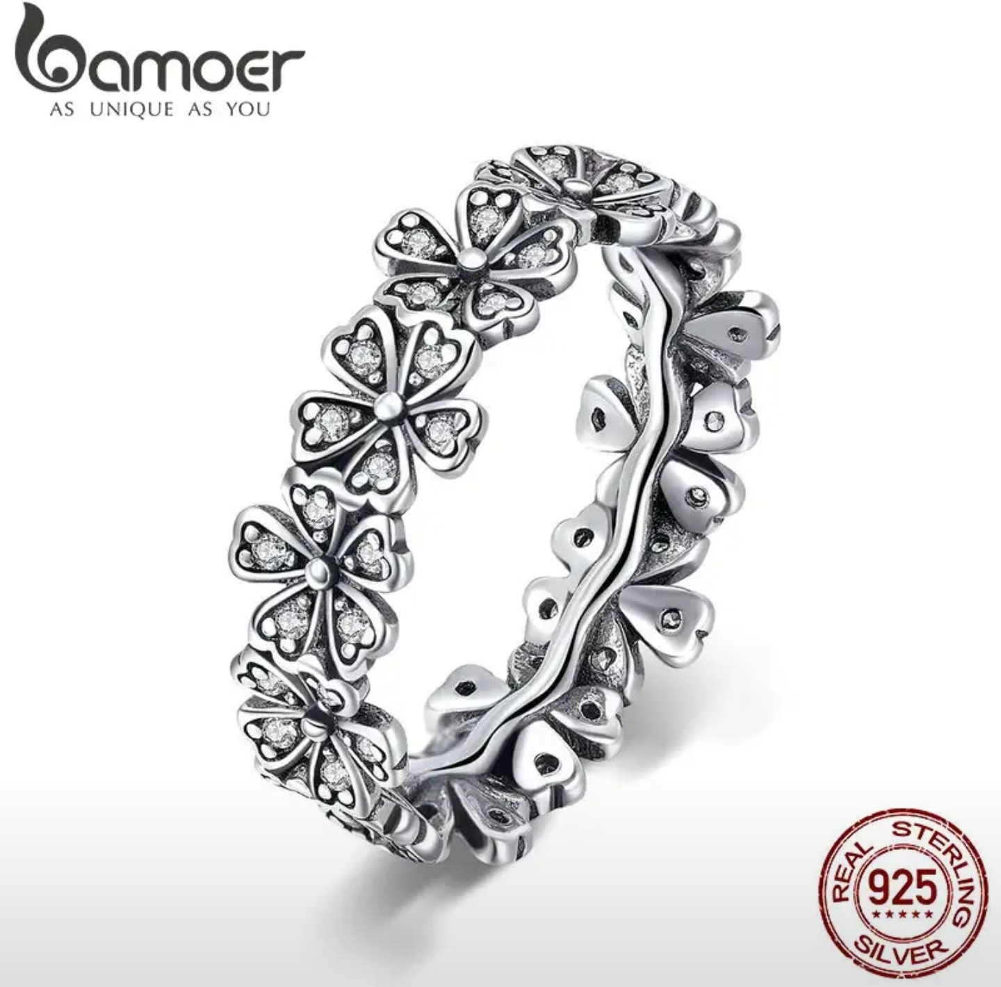 Bamoer Серебряное кольцо с фианитами «Сакура»