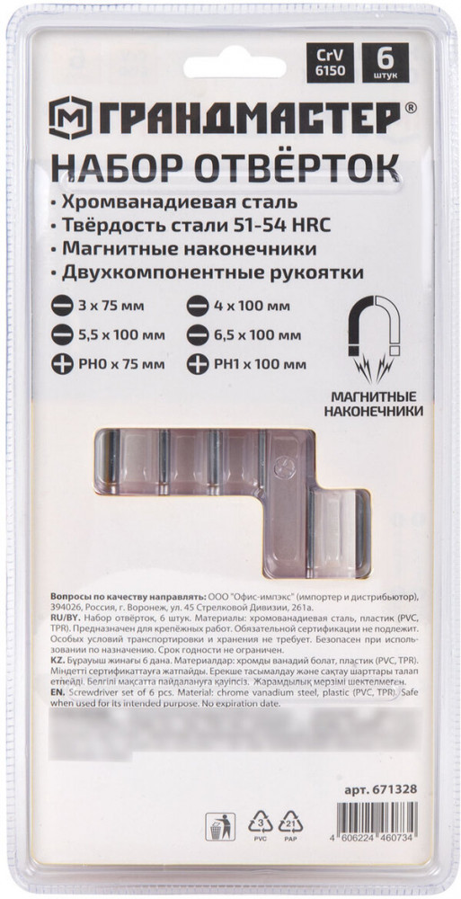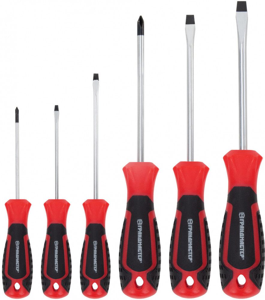 Набор отвёрток предназначен для монтажа и демонтажа резьбовых соединений разных типов и размеров. Отвёртки изготовлены из высококачественного хромванадиевого сплава с твёрдостью стали 51-54HRC по шкале Роквелла и оснащены магнитными наконечниками. Предназначены для проведения работ с различными крестовыми и шлицевыми крепежными соединениями. Двухкомпонентные рукоятки призваны снизить нагрузку на кисть благодаря резиновым вставкам, предотвращающим скольжение отверток в руке. |