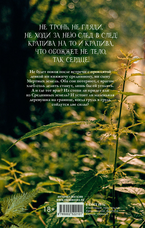 «Крапива» — сказочная история, которая очарует читателей мягким напевным слогом, сумасшедшей любовью, битвами не на жизнь, а на смерть, древними поверьями и головокружительной интригой. Роман для взрослых (18+) поклонников славянского фэнтези и Young Adult книг от редакции «Трендбукс». «Крапива» — современное издание для ценителей приключенческой художественной литературы от таких издательств, как «АСТ», «Эксмо», «Альпина», Clever («Клевер»), «Росмэн».