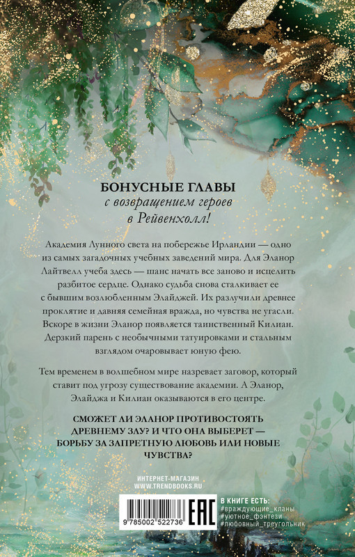 Серия: #trendbooks_magic «Академия лунного света» — новинка автора дилогии-бестселлера «Академия Рейвенхолл» Джулии Кун. Завораживающая сказка для взрослых о любви, магии фей и древнем проклятии с потрясающей атмосферной обложкой и оформлением страниц. История очарует хитросплетением тайн, сильными чувствами и волшебными пейзажами Ирландии. |