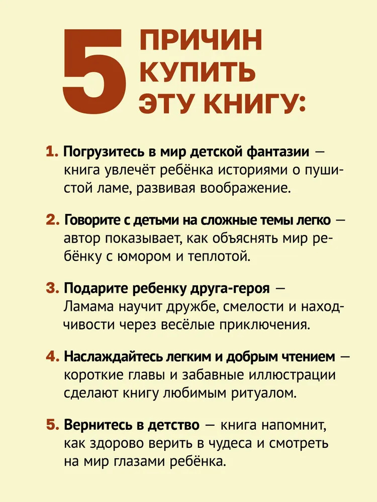Серия: Вы и ваш ребенок Когда в доме живут серьёзные 4-летние мальчики, то там обязательно заводятся чудесные Ламамы и неожиданно начинают действовать загадочные бумсы, бомсы и блямсы. В этой книге мы знакомимся с замечательной компанией и случайно оказываемся в подушечной стране. Подглядывала и записывала за Фёдором и Ламамой его бабушка и писательница Ольга Ускова. А если что и напутала в первой книжке, то только потому, что на обложку выпрыгнул Бомс! |