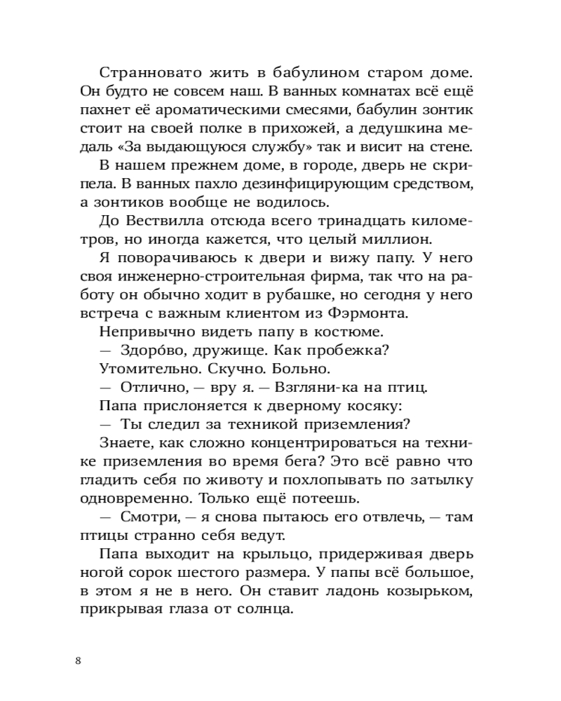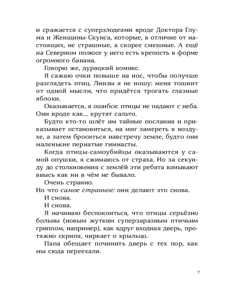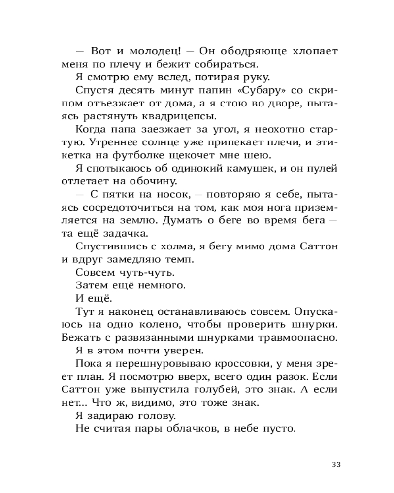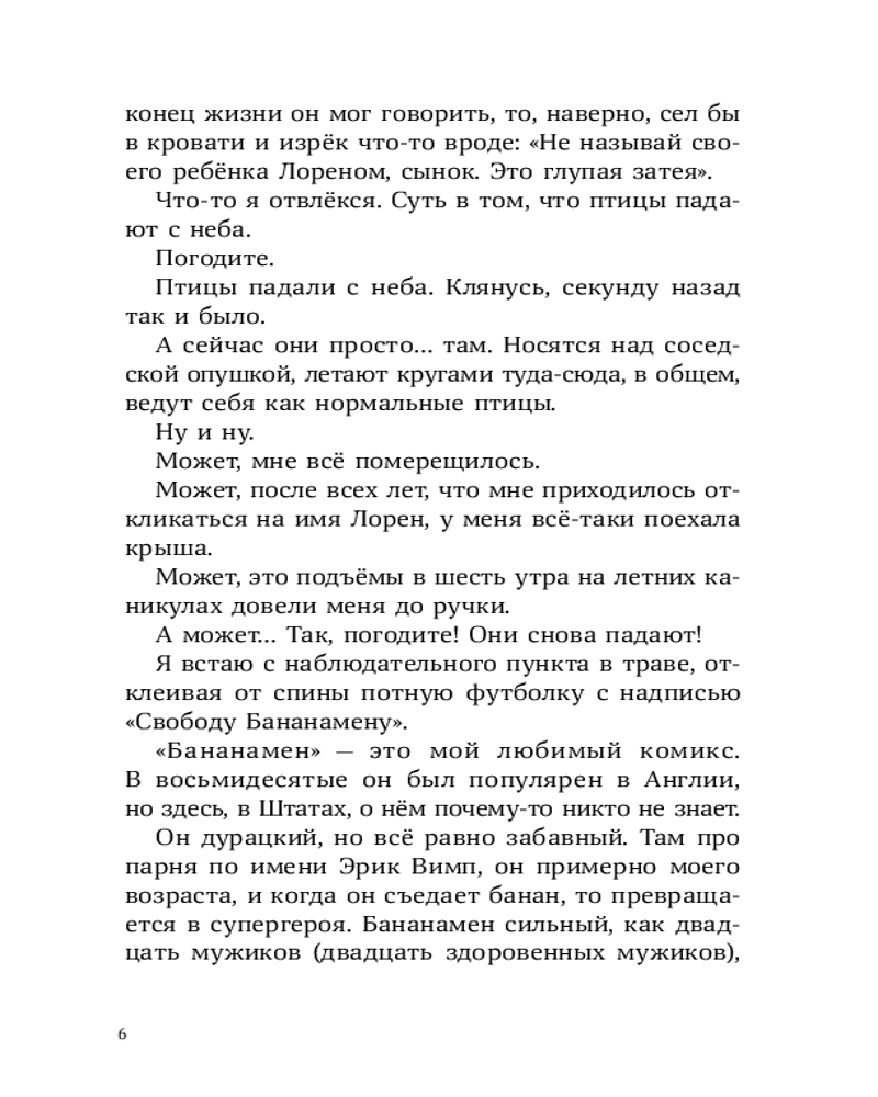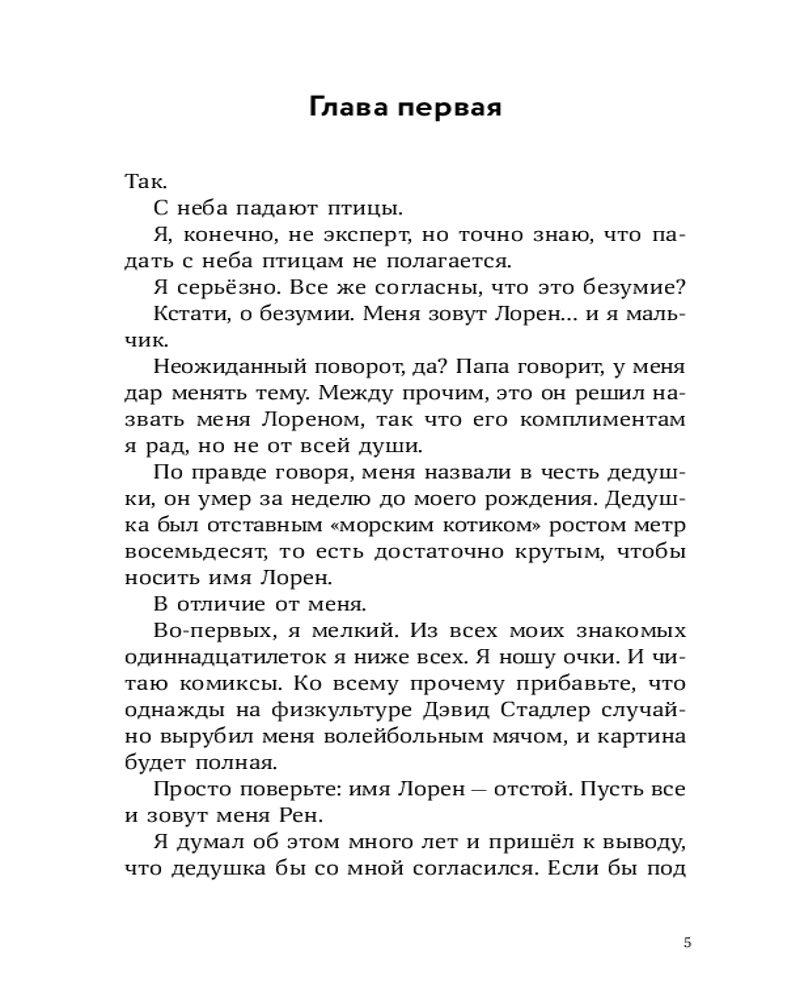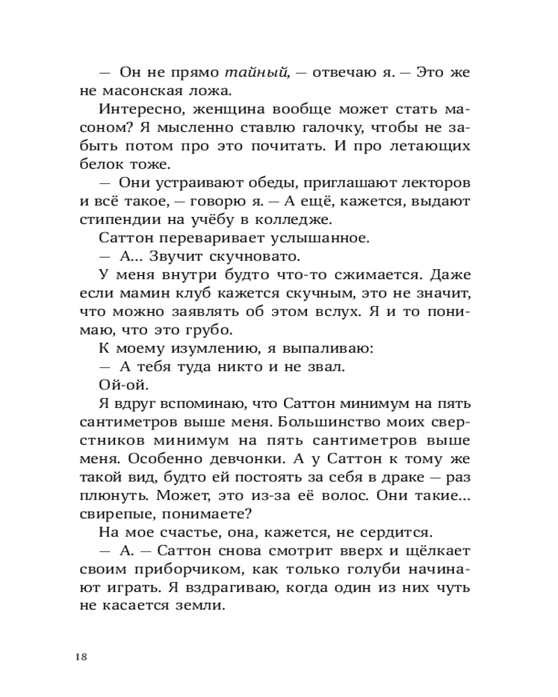 У Лорена Холла или просто Рена куча проблем: его семья переехала из города в старый бабушкин дом, лучший друг заводит крутую компанию, в которую Рен категорически не вписывается, а тренировки по бегу, которые так радуют отца Рена, бывшего тренера по кроссу, совсем не радуют самого мальчика. А тут еще и голуби над соседским домом странно себя ведут — взмывают вверх и камнем бросаются на землю, в последний момент делая кувырок. Оказывается, это не простые голуби, а бирмингемские роллеры. Новая соседка Рена, Саттон, тренирует их для соревнований. Из любопытства и ради возможности увильнуть от пробежек Рен все чаще навещает голубятню и постепенно открывает для себя новое захватывающее увлечение. Но как сказать папе, что предпочитаешь голубей марафону? И получится ли сохранить старую дружбу? |