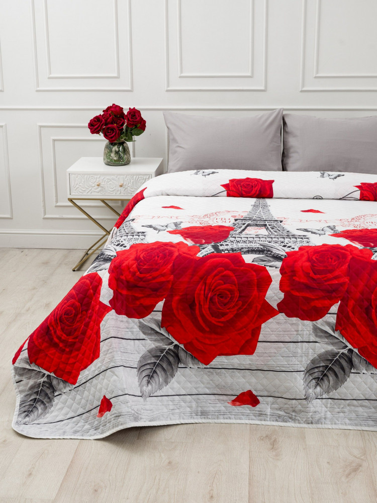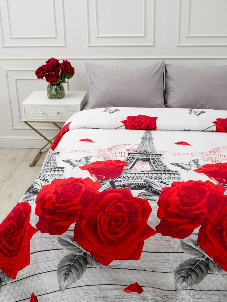Покрывало стеганое «Розы в Париже на белом» | Pavline