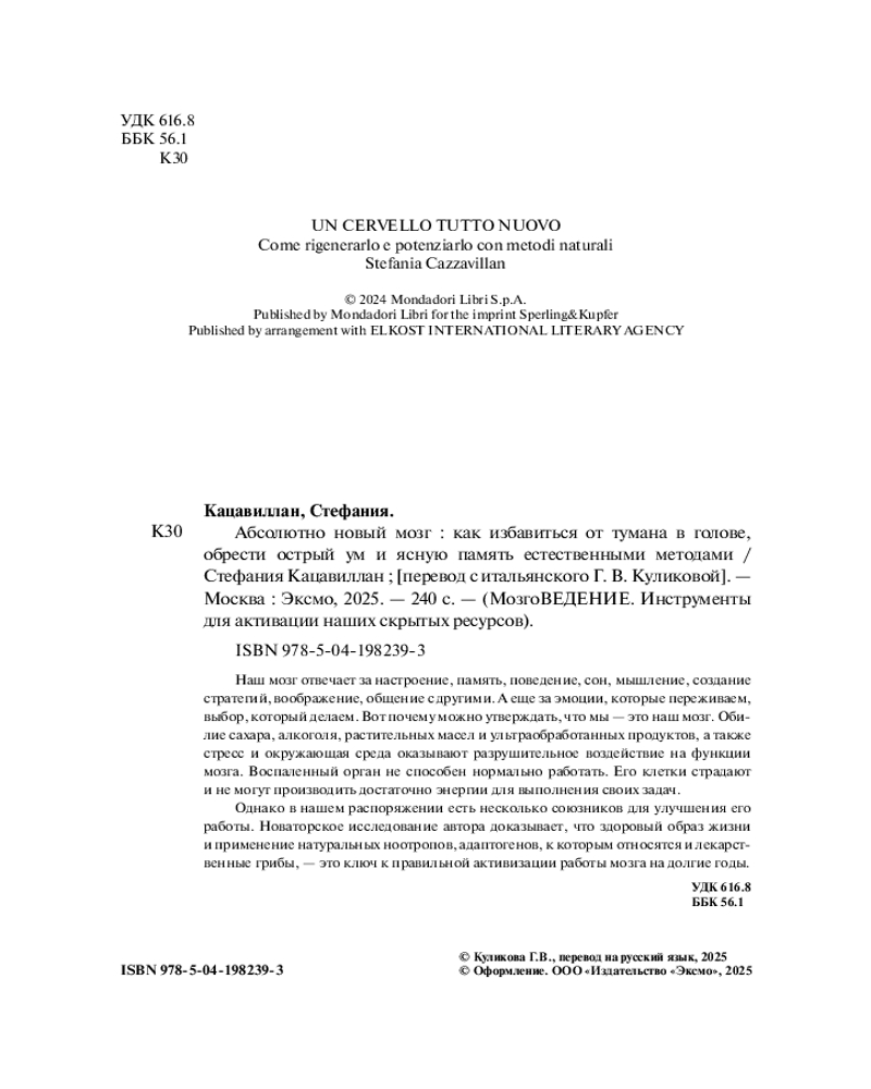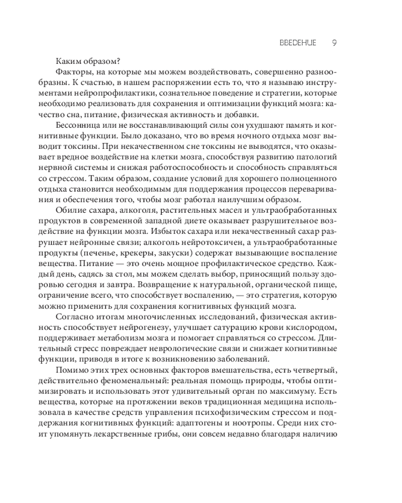 Серия: МозгоВЕДЕНИЕ. Инструменты для активации наших скрытых ресурсов Наш мозг — невероятно сложный, эффективный, но хрупкий инструмент, благодаря которому мы чувствуем, познаем мир, принимаем решения. Новаторские исследования автора доказывают, что неправильный образ жизни провоцирует воспаление в мозге, которое негативно влияет на нашу память, концентрацию, ясность ума, способствует развитию неврологических патологий. Однако хорошая новость в том, что применение натуральных ноотропов, адаптогенов, к которым относятся и лекарственные грибы, — это ключ к повышению производительности мозга и поддержанию его молодости в течение длительного времени. |
