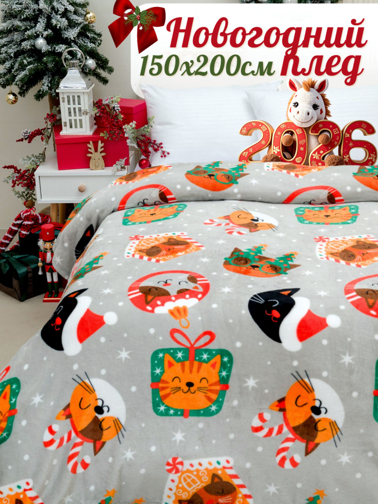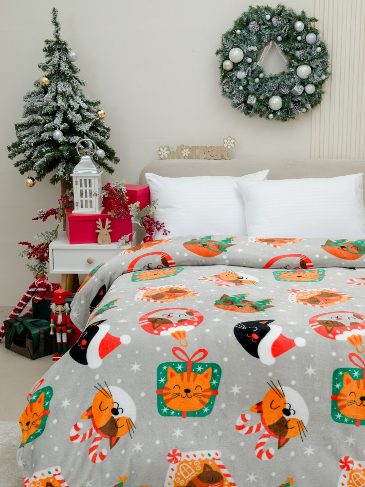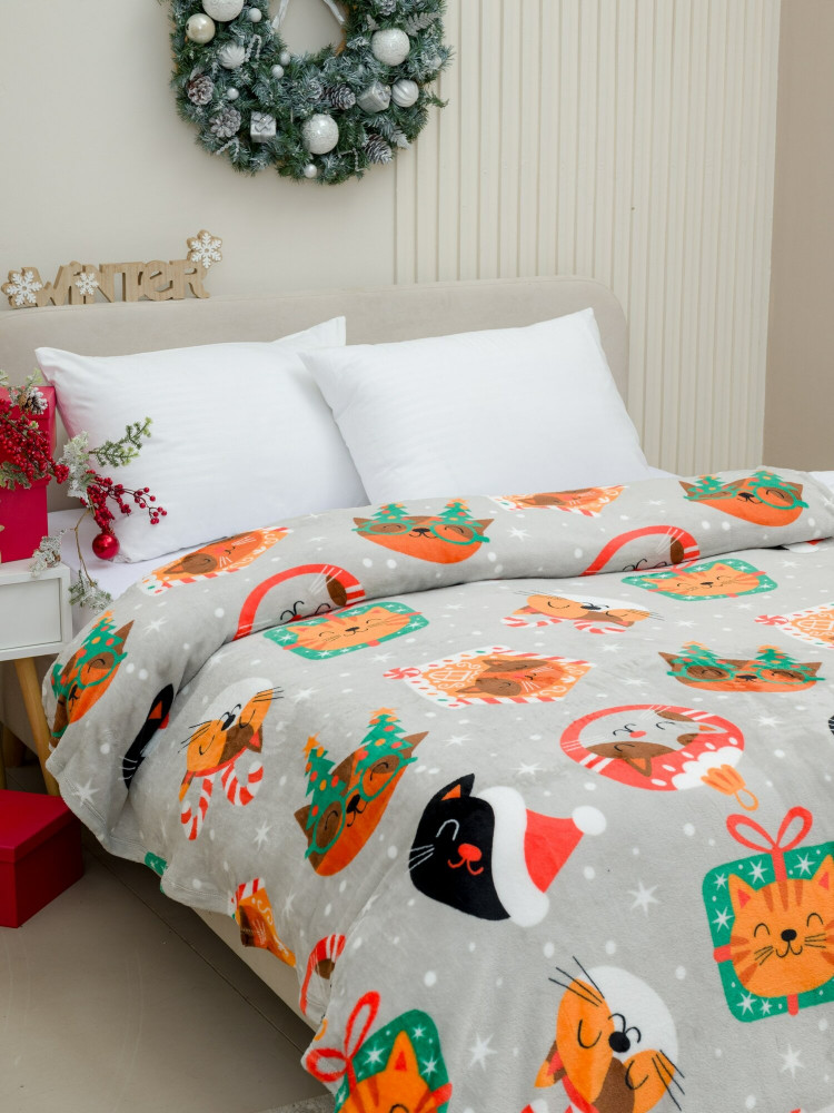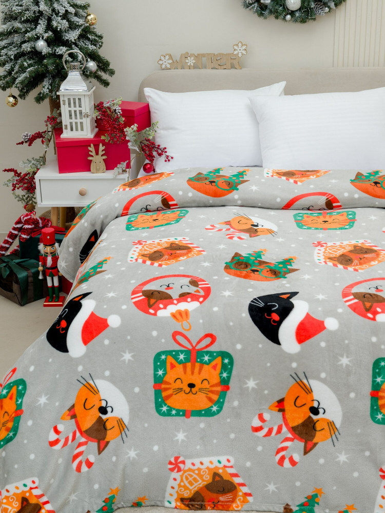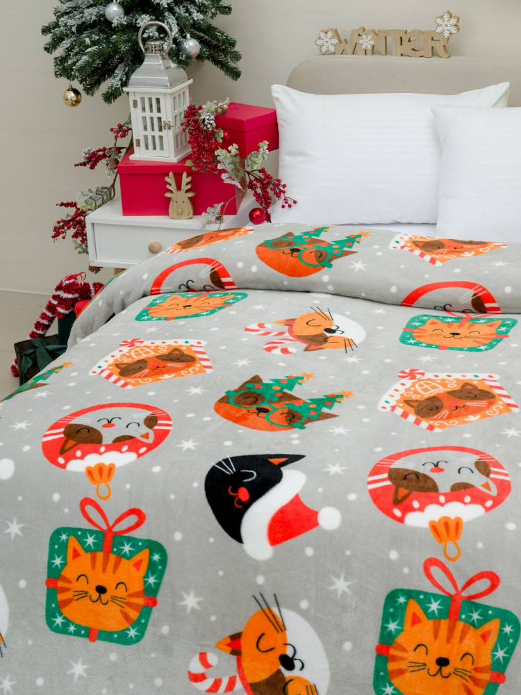 Покрывало-плед трикотажное ворсовое «Котики НГ» | Pavline