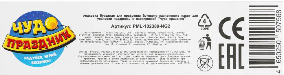 Чудо праздник Пакет подарочный