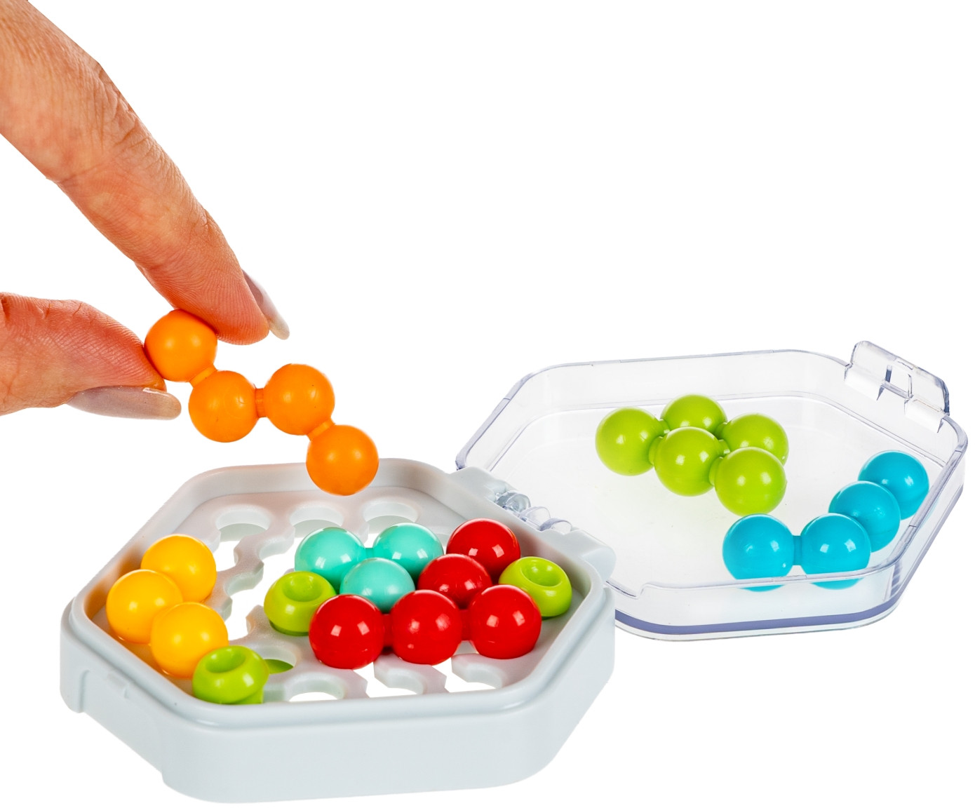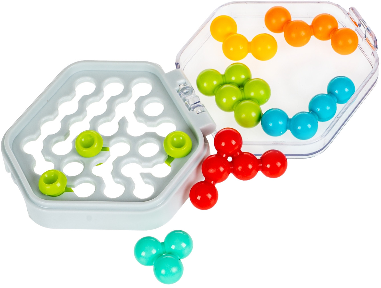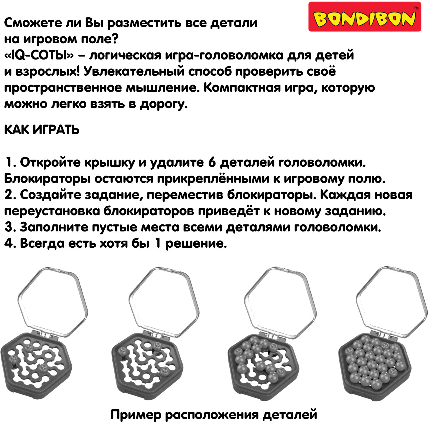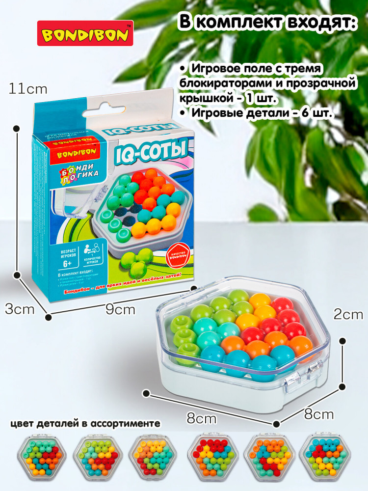 Развивайте мышление с компактной логической игрой IQ-соты из серии БондиЛогика от Bondibon. Это головоломка нового поколения, в которой нужно верно разместить объемные детали внутри шестигранного игрового поля, обходя блокираторы. Уникальный формат тренирует пространственное мышление, логику и концентрацию. Внутри карманной коробочки вы найдете игровое поле, 6 блоков, выполненных в форме соединенных цветных шариков, и 3 блокиратора.