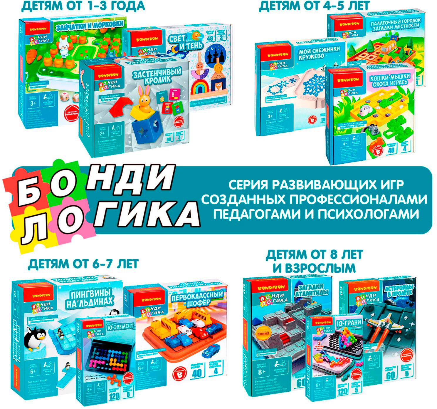 Откройте для себя другие головоломки из серии БондиЛогика от бренда Бондибон и соберите яркую коллекцию игр для развития мышления!