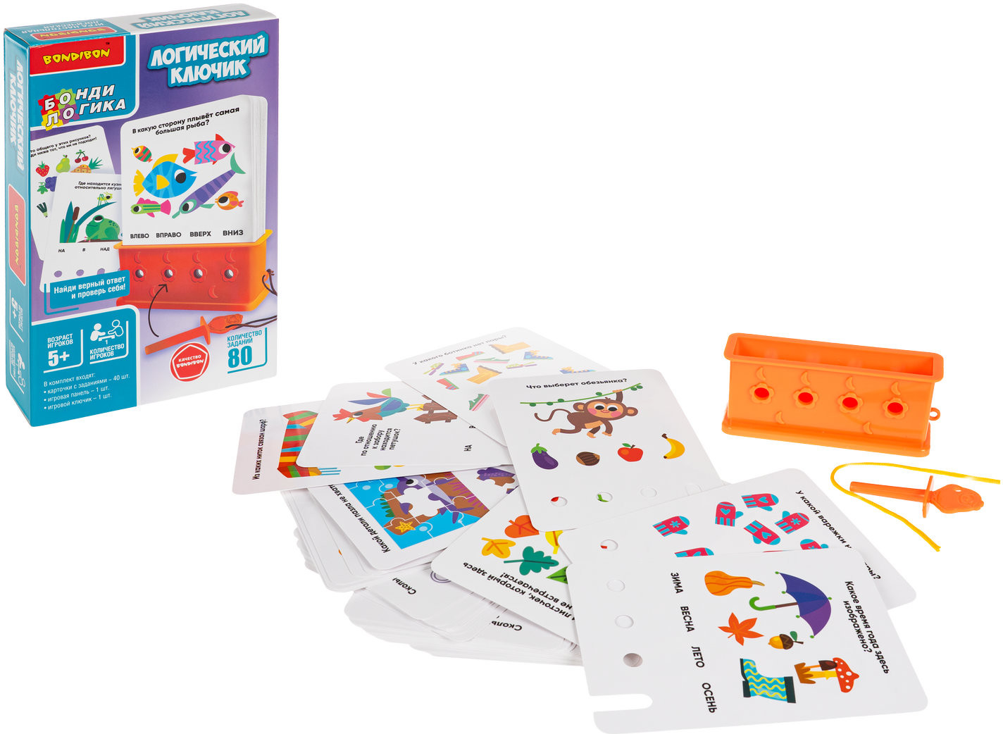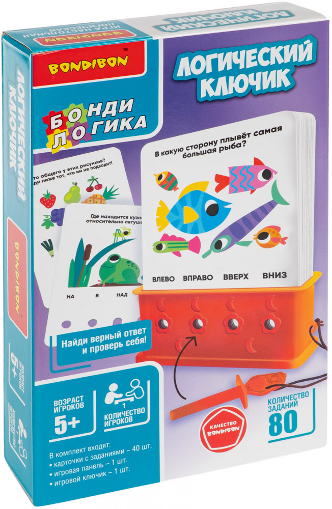 Bondibon Игра логическая «Логический ключик»В данный момент этот товар отсутствует в продаже. Возможно, у нас найдется аналогичный или похожий товар здесь. Серия: Бондилогика Открой мир логики и анализа вместе с обучающей игрой Логический ключик серии БондиЛогика от бренда Bondibon! Это тренажёр для развития мышления, внимания и сообразительности. Ребёнок рассматривает карточку с заданием, вставленную в специальную панель, выбирает ответ и вставляет логический ключик в нужное отверстие. Если задание выполнено верно, то карточка легко извлекается из подставки. Такой формат самопроверки делает игру увлекательной и по-настоящему обучающей. В игре представлены разнообразные задачи: на счёт, форму, цвет, логическую последовательность, пространственное мышление и внимательность. Формат обучения через игру помогает ребёнку учиться с удовольствием и без стресса. Игра развивает логическое мышление и помогает подготовиться к школе. |