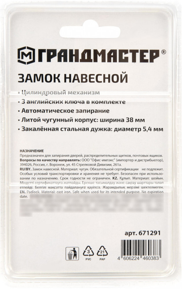 Замок навесной Грандмастер с цилиндровым механизмом секретности предназначен для запирания дверей, распределительных щитков, почтовых ящиков. Достаточно прост по конструкции и надёжен в повседневной эксплуатации. |