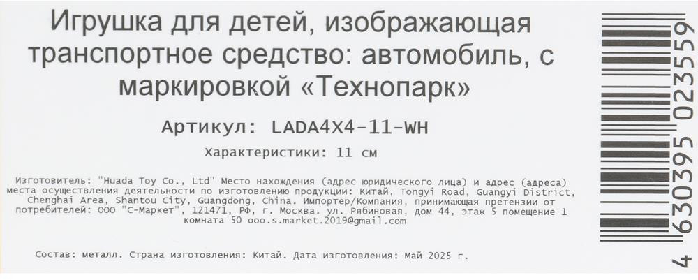 Технопарк Машина инерционная «Lada 4×4»