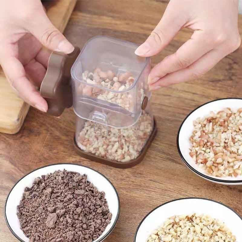 Отлично подходит для легкого и быстрого измельчения грецких и лесных орехов, миндаля, фисташек, орехов кешью, шоколада, бисквитного и песочного печенья для украшения тортов, сливочного и фруктового мороженого и других продуктов. |