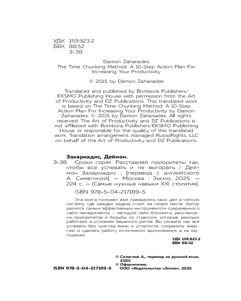 Серия: Самые нужные навыки 21 столетия Эта книга поможет вам превратить хаос дел в четкую систему, где каждая задача стоит на своем месте. Автор делится самым эффективным инструментом современного тайм-менеджмента — методом тайм-блокинга, расстановки приоритетов и борьбы со стрессом, которые реально работают в условиях бешеного ритма. Вы узнаете, как все успевать без чувства вины и усталости, сохранить энергию и сделать работу источником вдохновения, а не выгорания.  |