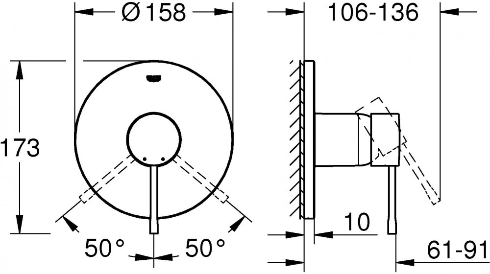 • настенная панель с GROHE FastFixation (скрытое уплотнение штока, скрытое крепление);