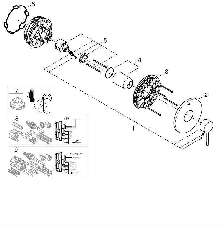 • GROHE SilkMove керамический картридж Ø 46 мм;