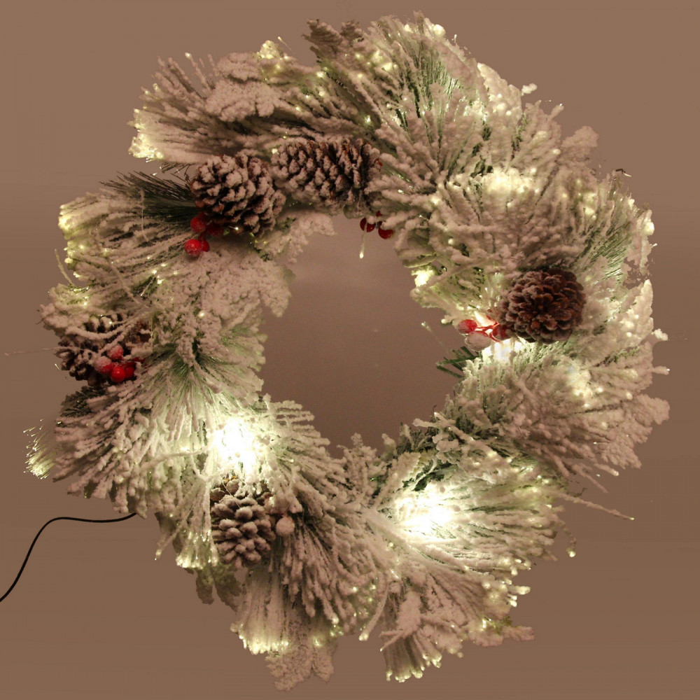Серпантин Венок хвойный с подсветкой «Заснеженный сад»