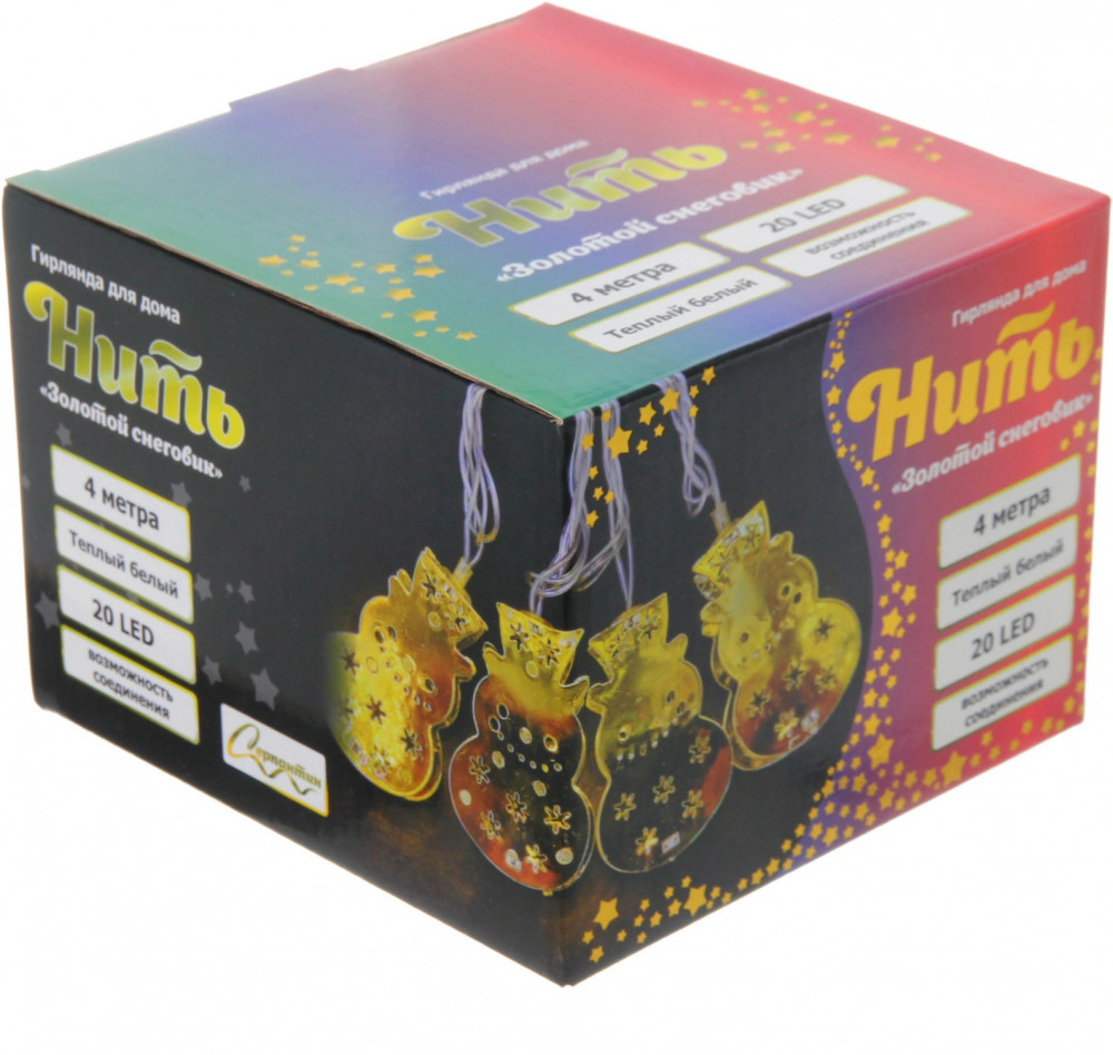 Серпантин Гирлянда для дома «Золотой снеговик»