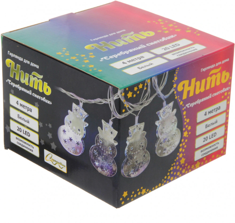 Серпантин Гирлянда для дома «Серебряный снеговик»