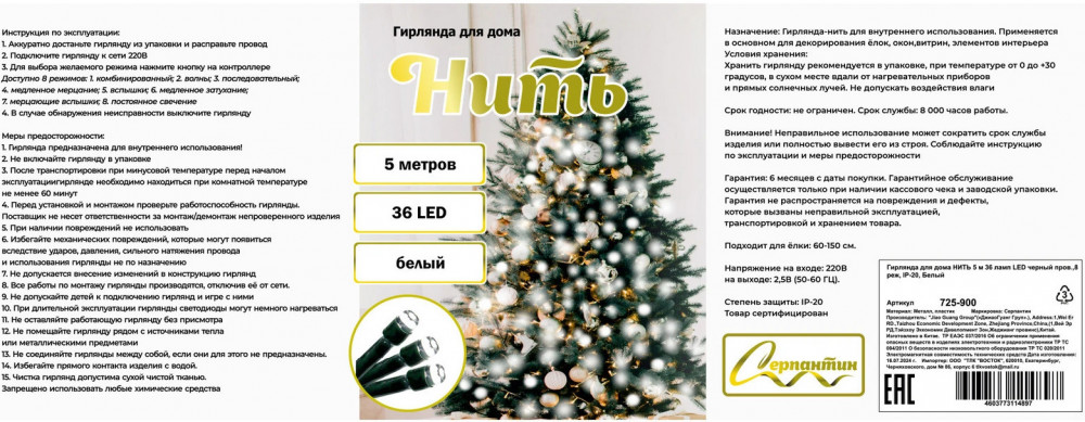 Серпантин Гирлянда для дома «Нить»