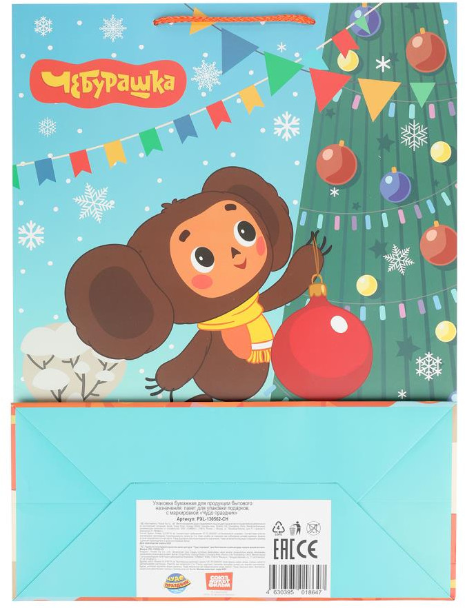 Чудо праздник Пакет подарочный «Новогодний Чебурашка»