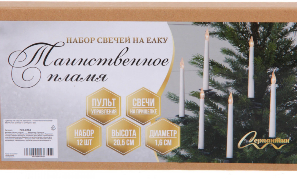 Серпантин Набор свечей на ёлку на прищепке «Таинственное пламя»