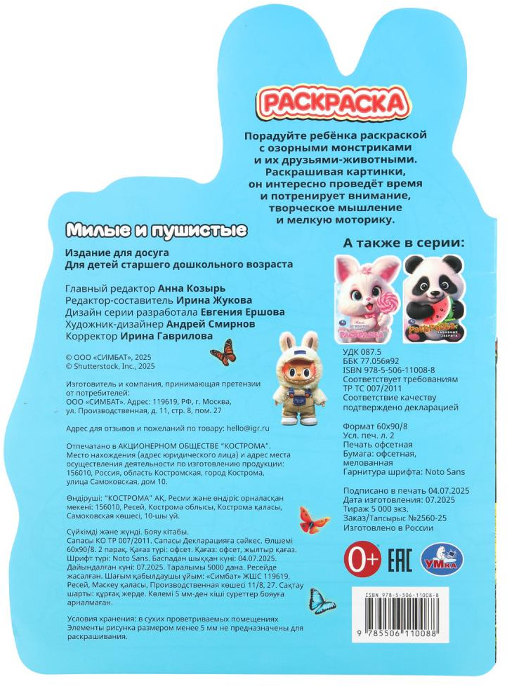 💳 Оплатить за товар можно при получении 🇰🇿 Есть бесплатная доставка по Казахстану 🎁 Копите бонусы с каждой покупки Раскраска «Милые и пушистые» ТМ «УМка» станет прекрасным подарком для маленьких художников. На страницах этой занимательной раскраски ребёнок встретится с милыми зубастыми монстриками и забавными капибарами. Внутри детей ожидают интересные картинки с чётким контуром и сюжетные тексты к ним. Раскрашивая их, они весело проведут время и потренируют руку к письму. Благодаря удобному формату раскраску можно взять с собой в дорогу. Игровые занятия с раскраской ТМ «УМка» развивают: мелкую моторику, сенсорное развитие, творческое мышление, внимание и речь. |