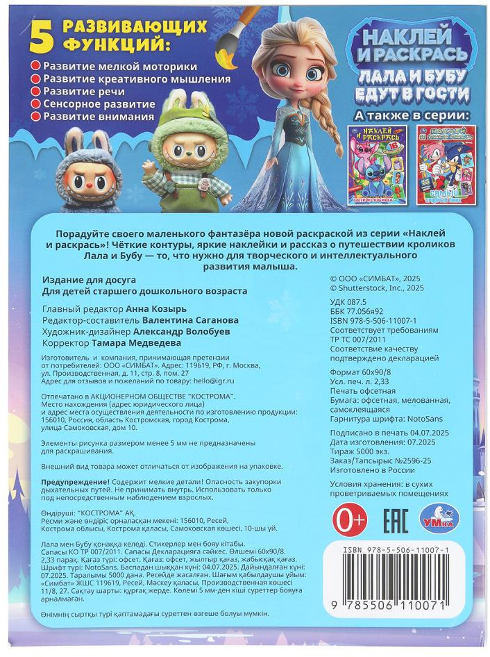 Раскраска с наклейками «Пушистые гости» из серии «Наклей и раскрась» ТМ «УМка» станет прекрасным подарком для маленького художника. Эта увлекательная раскраска про трендовых улыбающихся монстриков и очаровательных принцесс непременно понравится вашему ребёнку. Познакомясь с героями раскраски, он научится доброте и дружбе, разовьёт воображение и потренирует мелкую моторику. Кроме того, маленькому художнику предлагается посмотреть на наклейку, раскрасить свою картинку также или подобрать цвета по-своему. Раскраска из серии «Наклей и раскрась» с 16-ю наклейками в комплекте облегчит процесс обучения ребёнка и подготовит его руку к письму. Яркие стикеры и любимые герои сделают раскрашивание ещё более увлекательным. Игровые занятия с раскраской ТМ «УМка» способствуют развитию: мелкой моторики рук, памяти, речи, внимания, творческого мышления и усидчивости.