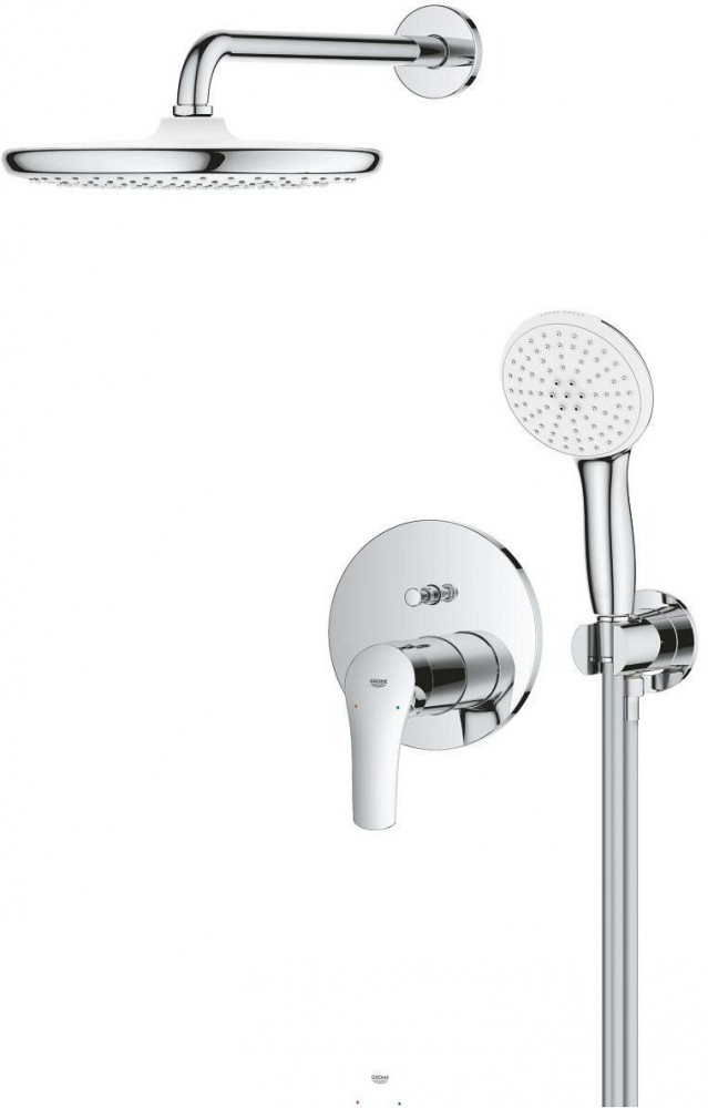 Душевая система Grohe Eurosmart — это сочетание современного стиля и функциональности «всё в одном». Плавное управление потоком и температурой воды обеспечивается благодаря прочному керамическому картриджу и цельному металлическому рычагу. Верхний душ диаметром 250 мм с кронштейном длиной 380 мм создаёт струю Rain. Ручной душ диаметром 110 мм имеет два варианта струи с помощью инновационного переключателя: мощная струя Jet, которая подходит для мытья волос, и струя Rain, нежная, как летний дождь. Ручной душ оснащён силиконовым кольцом, которое защищает от повреждений при падении, держателем и шлангом длиной 1500 мм. Износостойкое и простое в уходе покрытие сохраняет комплект в первозданном виде на долгие годы.